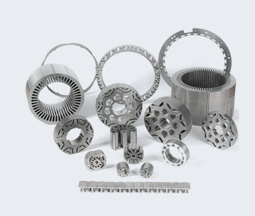 Laminations stacked together to form motor cores, enhancing torque and electromagnetic performance. Stacking method improves durability and efficiency, produced with precise assembly processes.