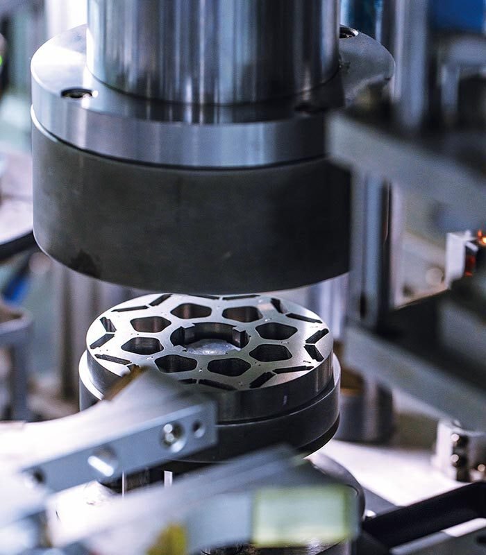 Precision-cut single laminations from silicon steel using advanced molds and punches, minimizing energy loss, and ensuring compact motor efficiency with high precision.